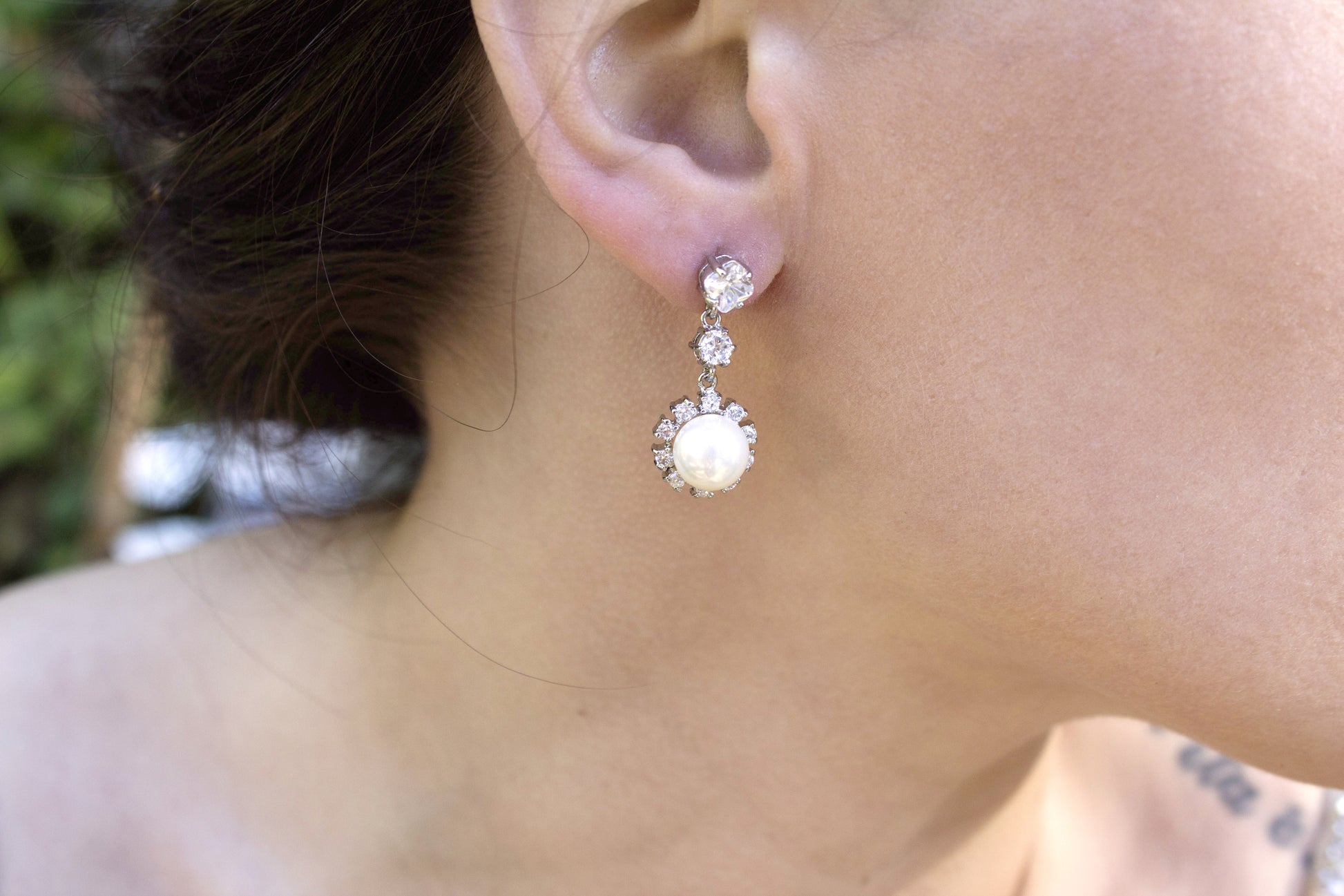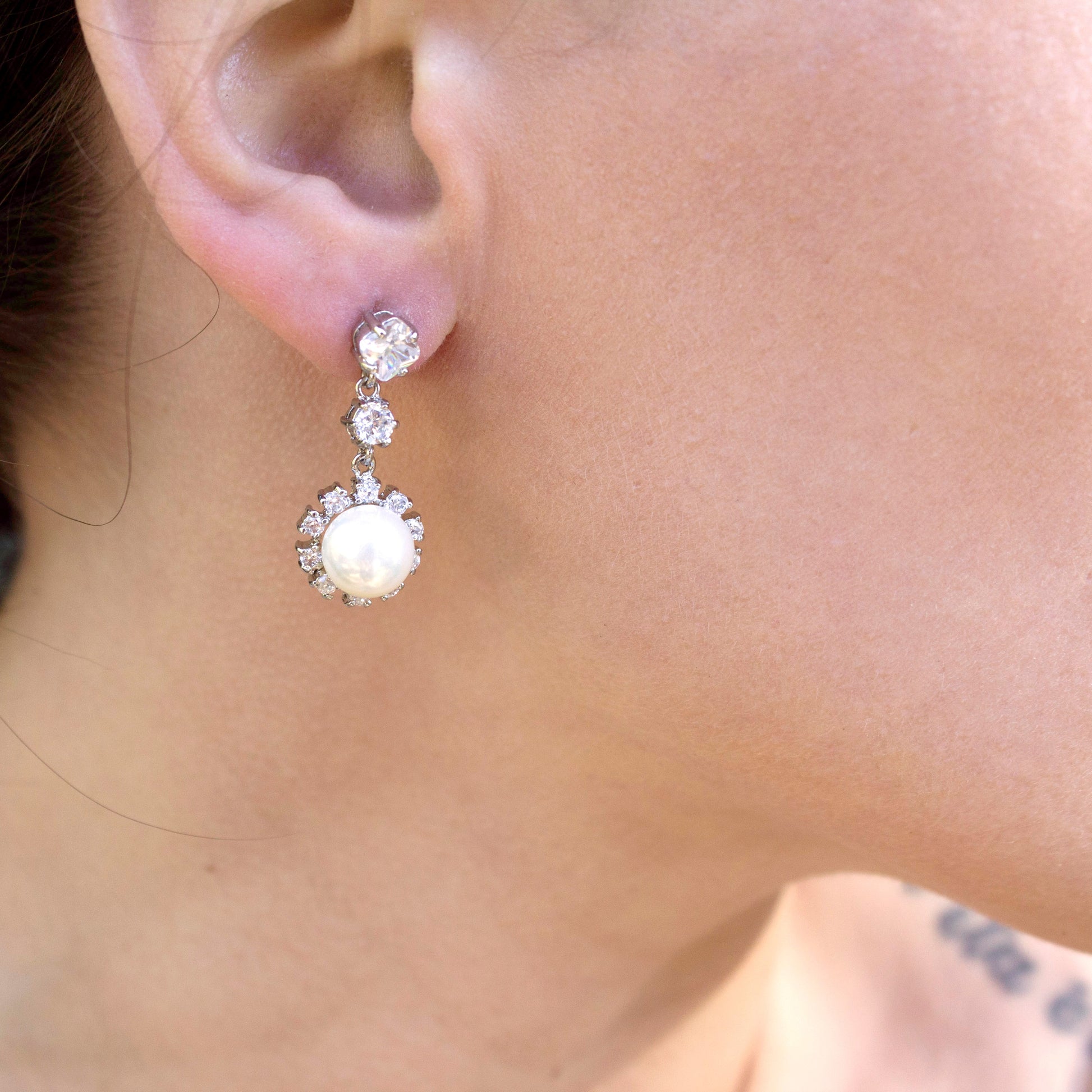 Elegant Pearl Drop Earrings with Austrian Crystal Accents - Wedding Bridal Special Occasion Jewelry