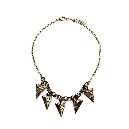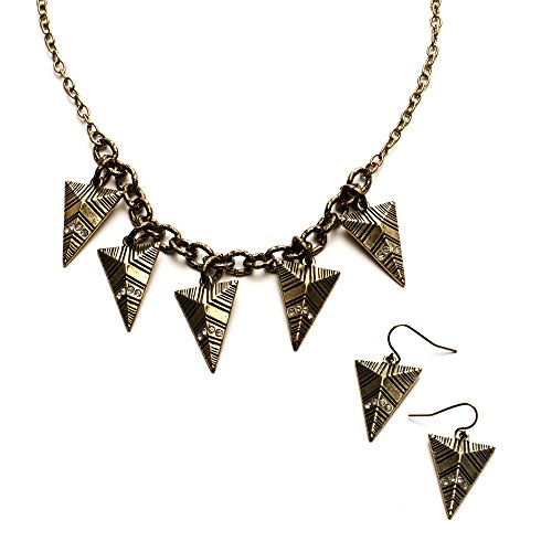 Tribal Arrow Necklace and Earring Set with CZ Crystals, Antique Gold Geometric Statement Jewelry