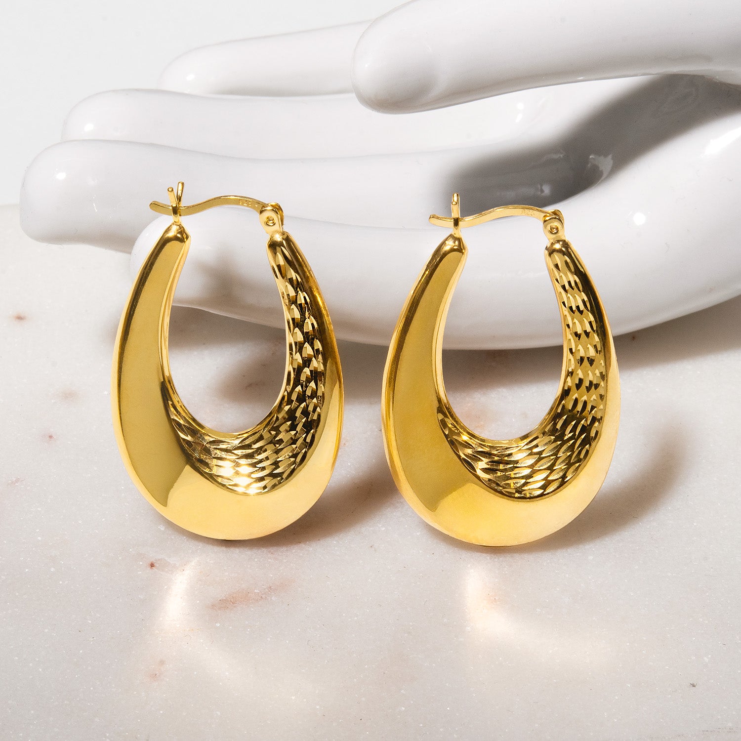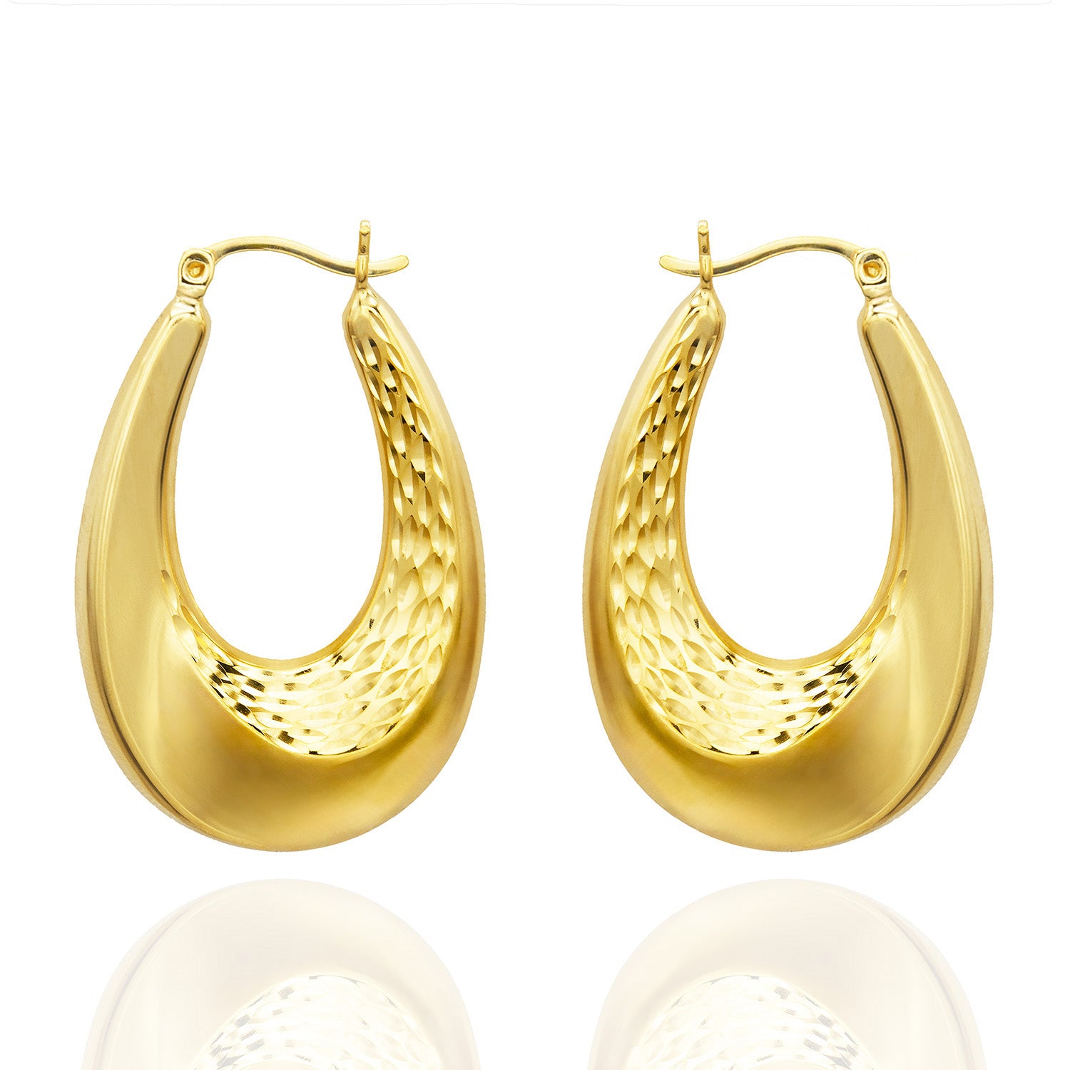 Elegant 14k Yellow Gold Plated Dangle Hoop Earrings Modern Women's Design
