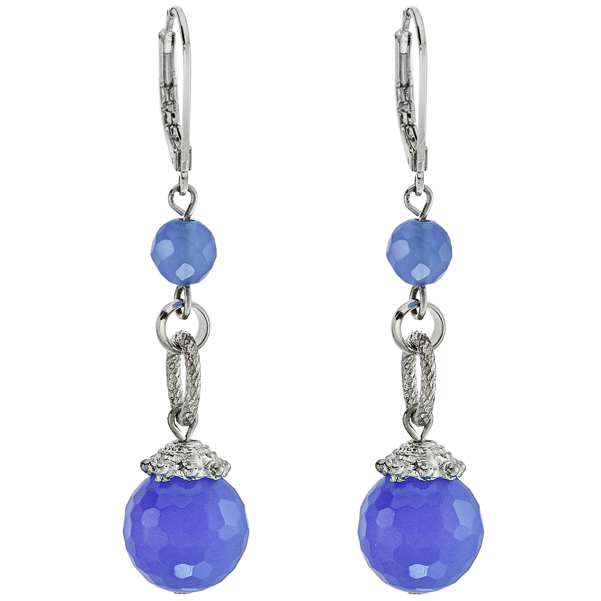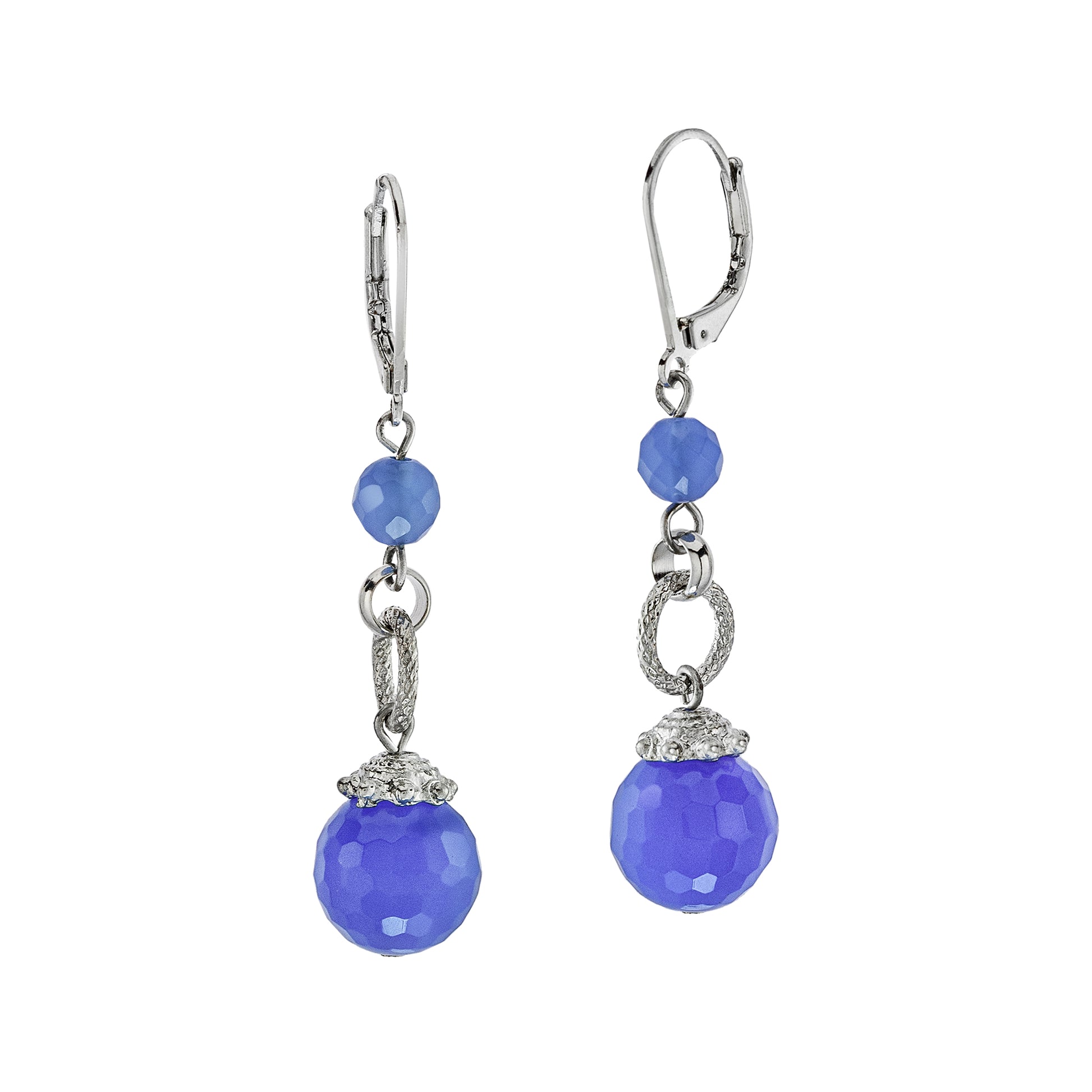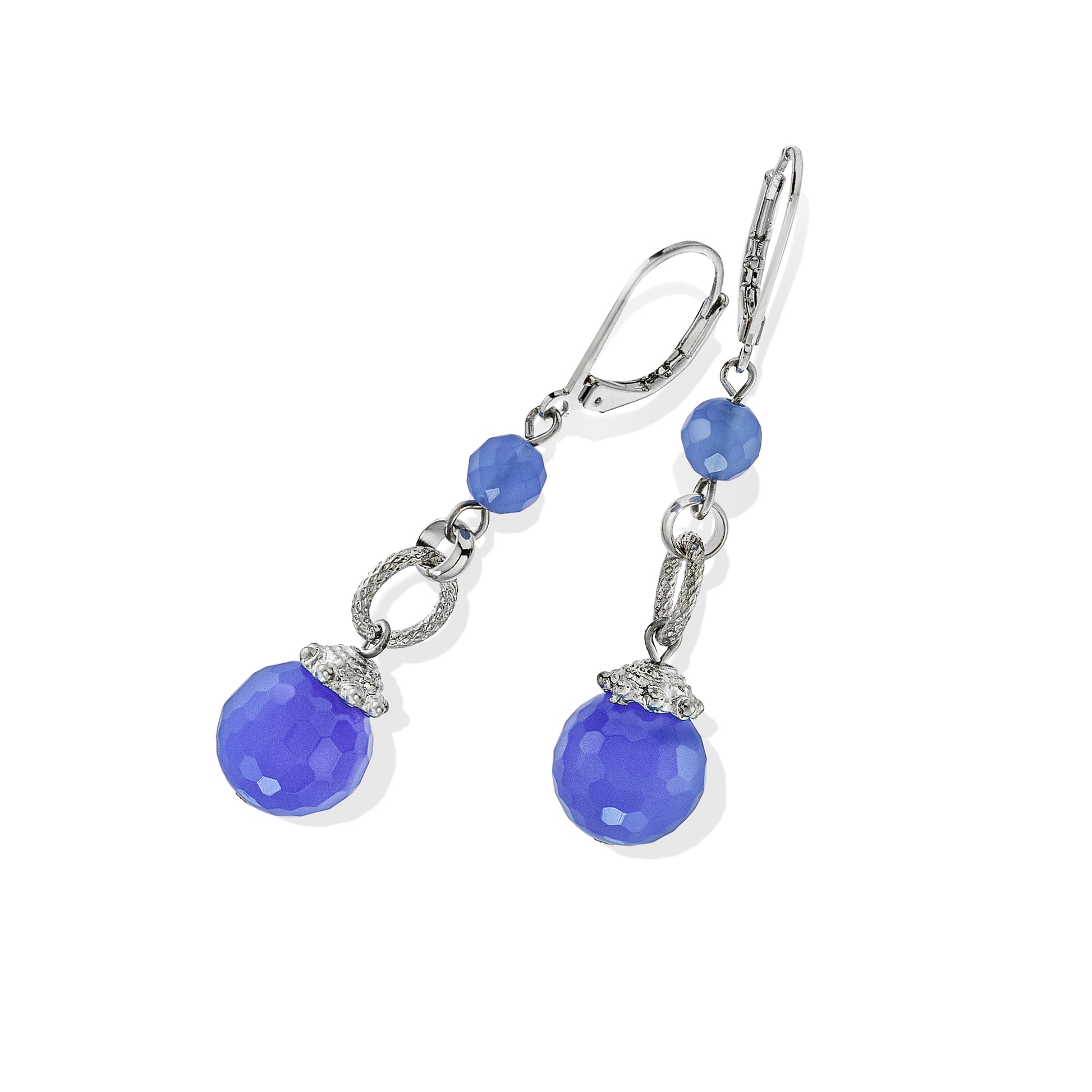 Elegant Blue Quartz Drop Dangle Earrings with Silver Tone Lever Back Closure - 2 Inch Length