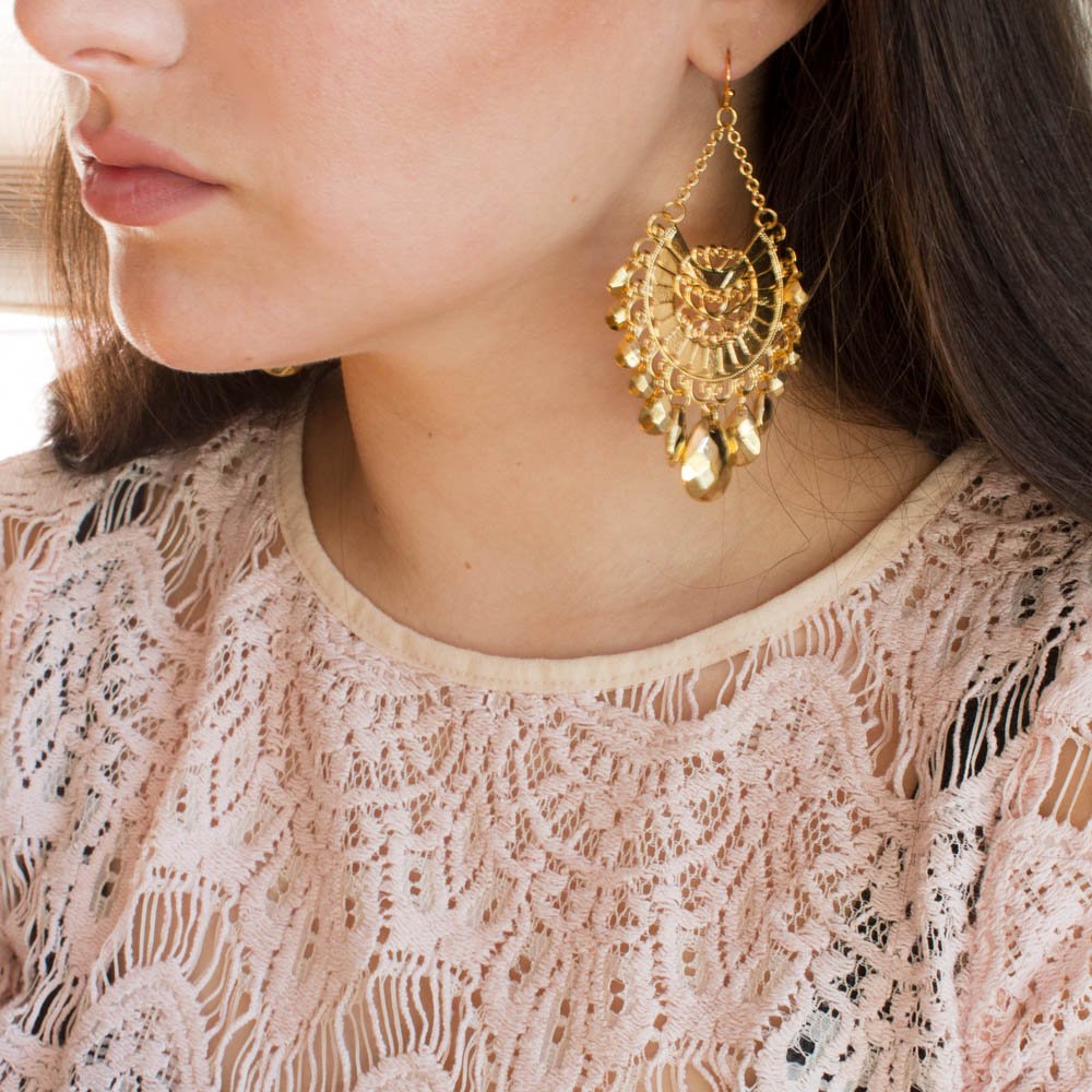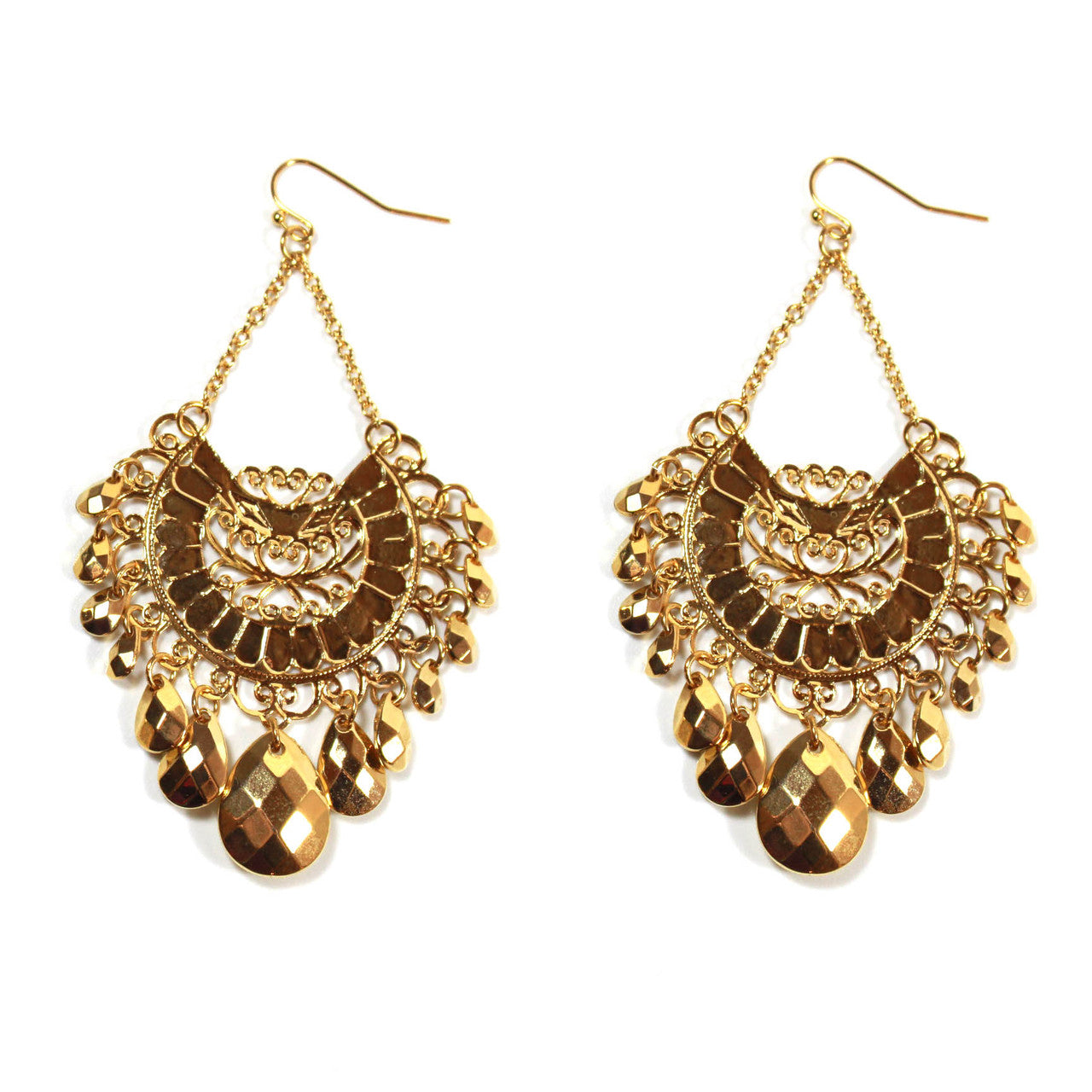 Bohemian Gold Tone Chandelier Dangle Earrings with Faceted Beads - 3.25 Inch Drop