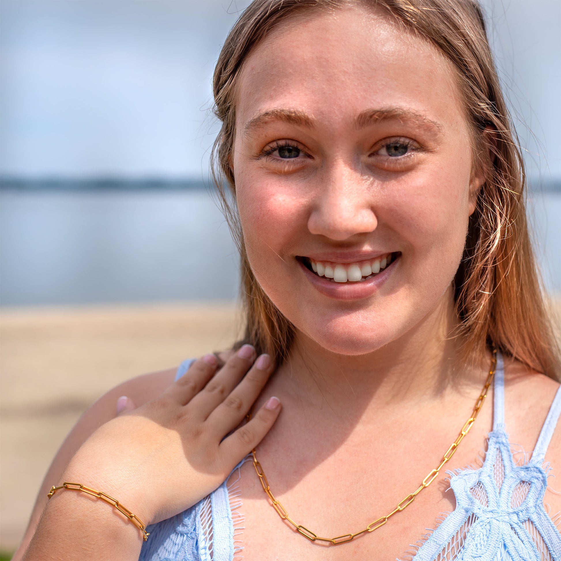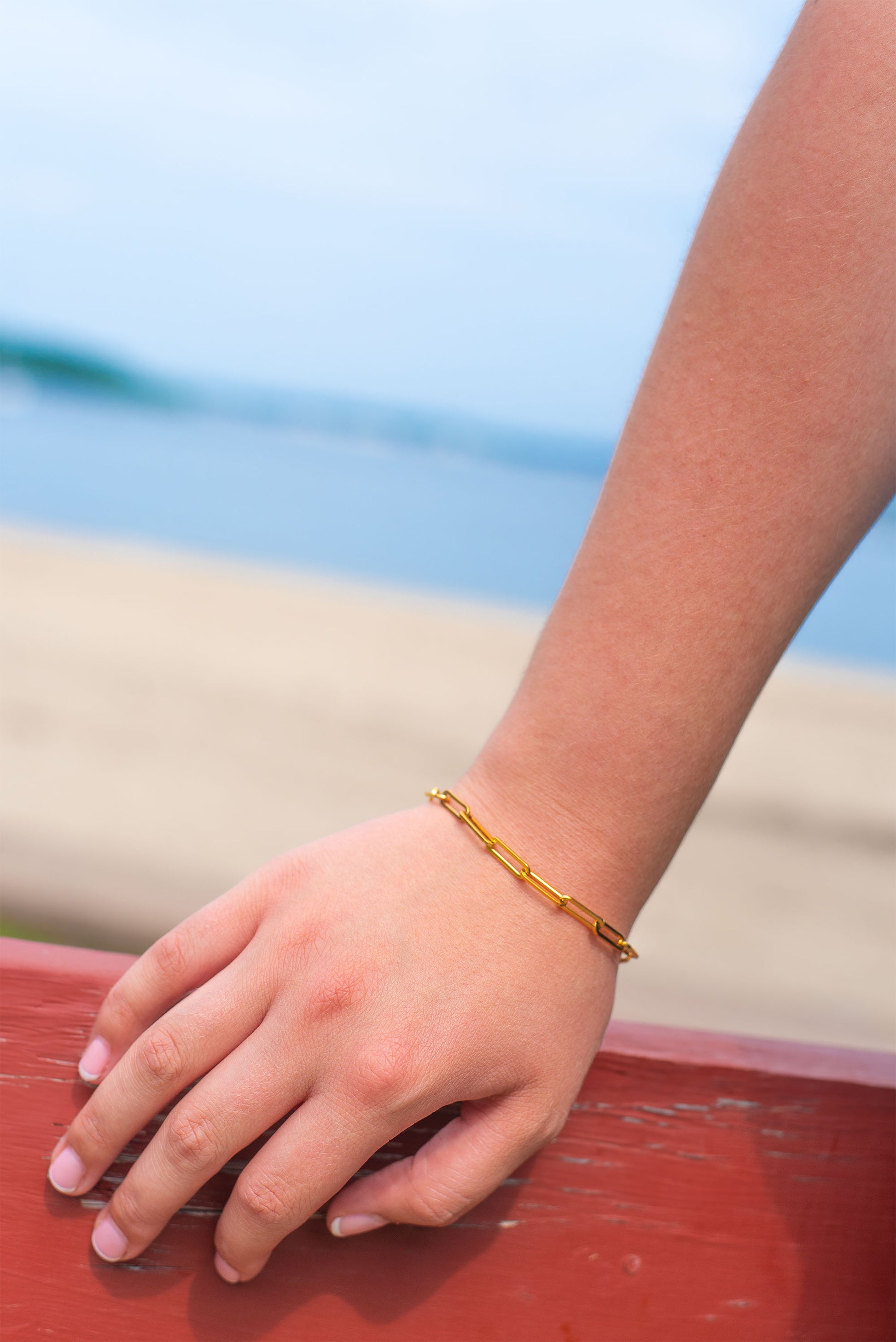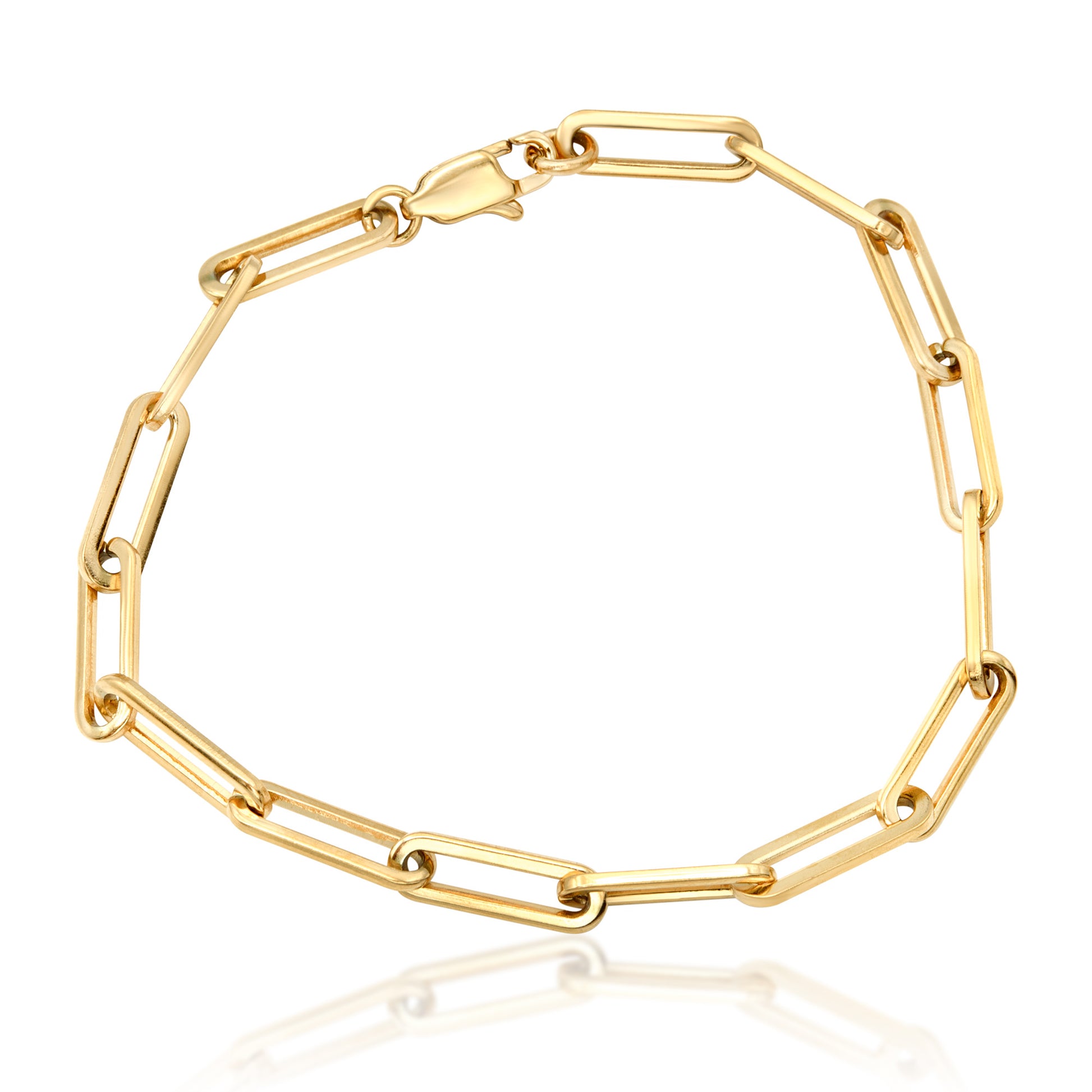 18kt Gold Plated Paperclip Chain Link Bracelet Stainless Steel 7.5 Inch Modern Fashion Jewelry