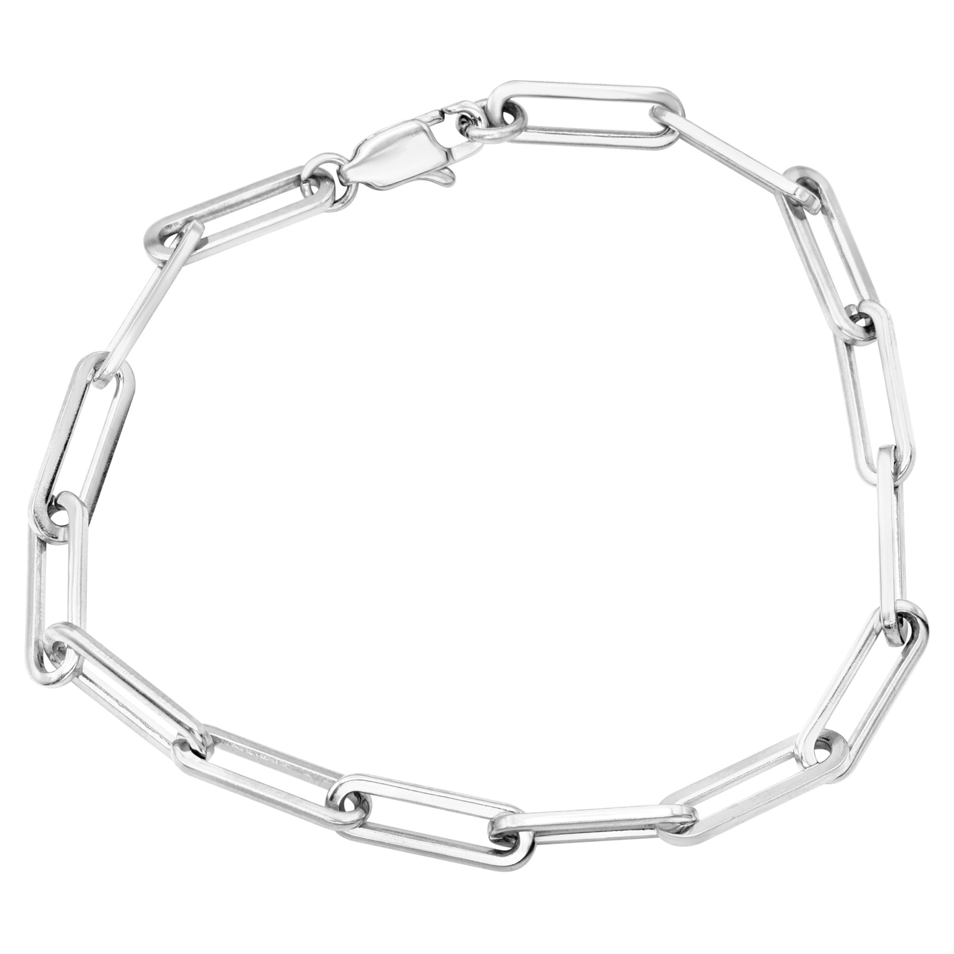 Add a contemporary edge to your jewelry collection with this versatile 18-inch paperclip chain necklace. Crafted from durable stainless steel with a polished finish, this necklace features a modern paperclip link design that's perfect for everyday wear. The secure lobster claw closure ensures your necklace stays in place, while the timeless style works beautifully alone or layered with other necklaces. Stainless steel construction means it's tarnish-resistant and hypoallergenic, making it ideal for sensitive skin. Matching bracelet sold seperately.