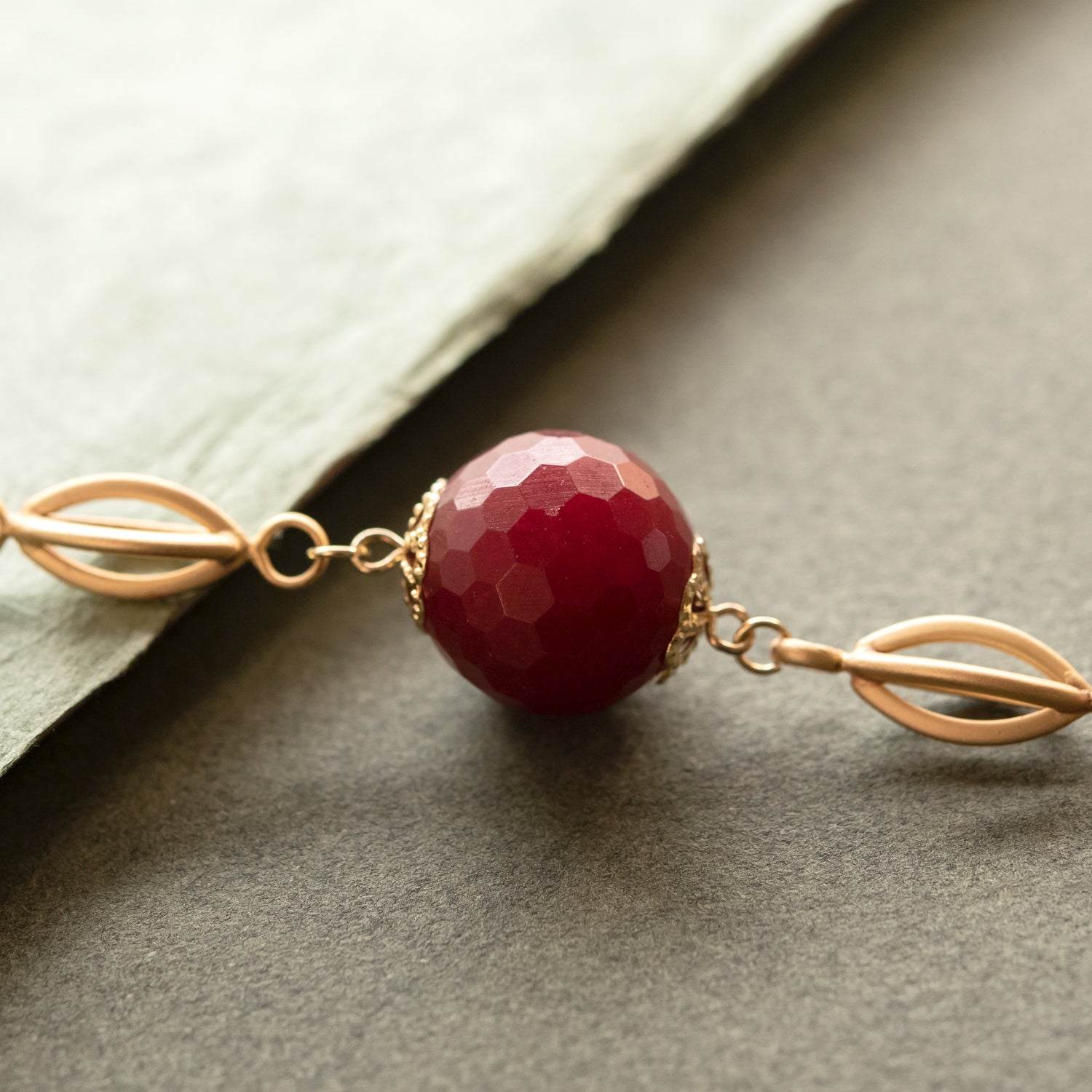 - Stones: Genuine dyed red jade and topaz austrian crystals